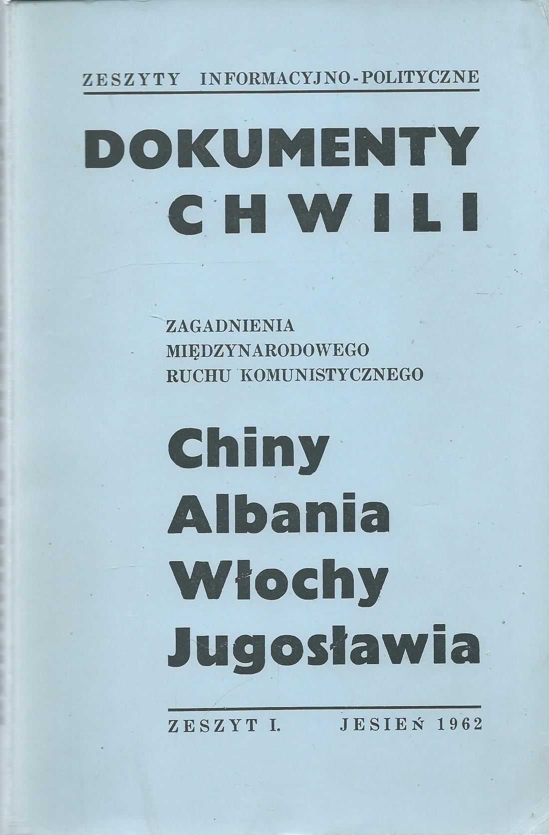 Dokumenty Chwili. Zagadnienia międzynarodowego ruchu komunistycznego: Chiny, Albania, Włochy, Jugosławia.